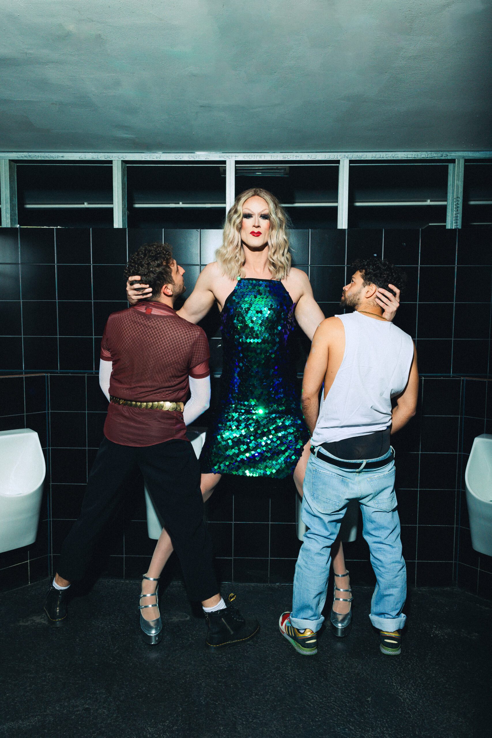 Toiletten sind eher selten Hauptschauplatz eines Musicals. Im konkreten Fall aber doch. Die Sanitäranlage gehört zu einem Gayclub: multifunktionaler Begegnungsort für Männer, die hier keineswegs nur ihre Notdurft erledigen. Es geht dabei mächtig zur Sache, sehr direkt und bevorzugt mit Vokabeln, die den erotischen Kosmos dieser Community ohne Umschweife ausformulieren. „FLUSH – Ein Club-Musical“ lautet der vielsagende Titel der im Berliner SchwuZ uraufgeführten Produktion aus der Feder von Robin Kulisch (Buch, Liedtexte im Gespann mit Felix Heller) und Mikael Johansson (Musik). Auf der Bühne steht ein fulminantes Trio, das in gleich 18 Rollen schlüpft. Am Ende der Premiere regnet es Ovationen.