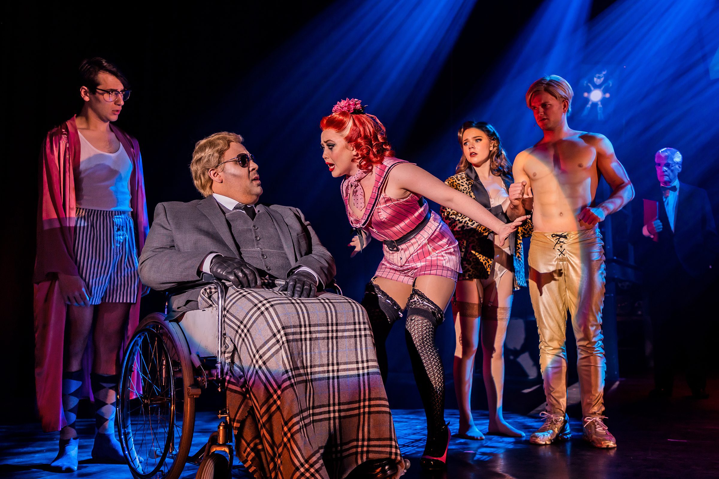 O’Briens überdrehtes Stück drängt alles ins Zentrum, was in braven Wohnzimmern eher verpönt ist. Lust, Verführung, Abkehr von moralischen Fesseln feiern hier Party total. Köstlich, wenn Brad und Janet sich im Schloss verirren, auf Frank’N’Furter und Riff Raff stoßen, dabei völlig aus der Fassung geraten und schließlich ihr eigenes Korsett ad acta legen. Die Inszenierung betont das Exzentrische, gibt den Figuren charismatische Konturen, besticht durch Lichteffekte und wabernden Nebel. Mit wenigen Requisiten wird reichlich Atmosphäre geschaffen.