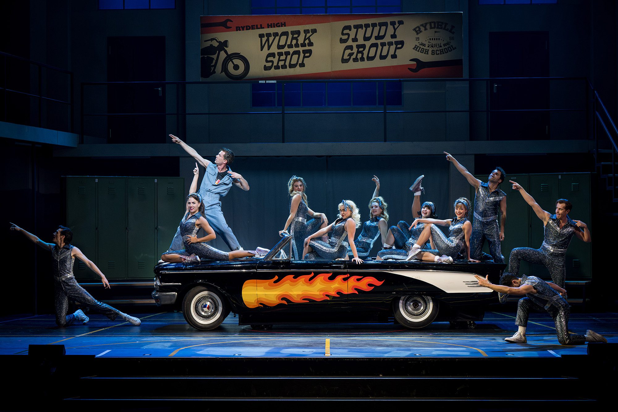 Musikalische Leitung: Stephan Kanyar • Regie: Gil Mehmert • Choreografie: Andrea Danae Kingston • Bühne: Jens Kilian • Kostüme: Falk Bauer • Licht: Michael Grundner • Sounddesign: Joerg Grünsfelder • Mit: Philipp Büttner (Danny Zuko), Antonia Kalinowski (Sandy Dumbrowski), Maria-Danaé Bansen (Betty Rizzo), Friederike Zeidler (Frenchy), Katalin Rohse (Marty Maraschino), Anna Teodora Donosa-Danila (Jan), Markus Schneider (Kenickie Murdock), Pedro Reichert (Doody), Julius Störmer (Roger), Jonathan Guth (Dominic „Sonny“ LaTierri), Kelly Panier (Patty Simcox), Albert Gaßmann (Eugene Florczyk), Giulia Vazzoler (Charlene „Cha-Cha“ DiGregorio), David Jakobs (Vince Fontaine), Brigitte Schirlinger (Miss Lynch), Andrew Chadwick (Teen Angel), Leonard Linzer (Johnny Casino) u.a. • Grease-Band