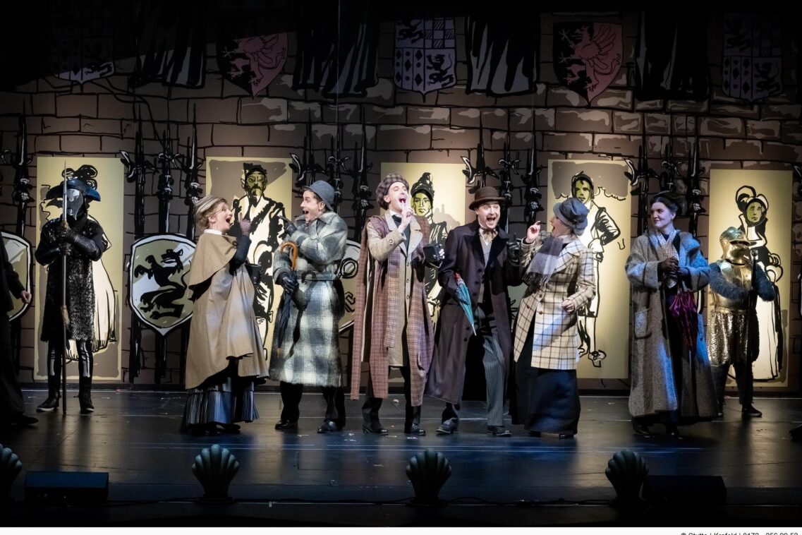 Musikalische Leitung: Giovanni Conti • Ausstattung: Siegfried E. Mayer • Choreografie: Bridget Quinn Petzold • Animierte Illustration: Peter Schmitz; Mit: Oliver Arno (Montague „Monty“ Navarro), Debra Hays (Miss Shingle), Rahel Antonia Wissinger (Sibella Hallward), Gabriela Kuhn (Phoebe D’Ysquith), Markus Heinrich (Die D’Ysquith-Familie) u.a. Niederrheinische Sinfoniker