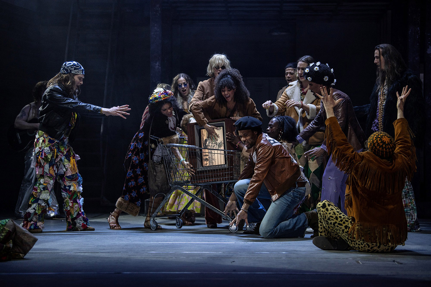 Steffen Gerstle als Woof liefert die ausgewogenste darstellerische und stimmliche Leistung des Abends. Nicholle Cherries warme, samtige Stimme in der Rolle der Ronny setzt Höhepunkte, und Daniel Dodd-Ellis als Hud beeindruckt mit kräftigem Bass. Masengu Kanyinda sorgt als Jeannie mit ihrer Kopfstimme für Gänsehaut. Jess Williams’ Choreografie ist vielschichtig und dient der Erzählung: mal wild und entfesselt, dann entrückt und langsam in den Drogentrips, bis hin zum archaischen Tribal Dance. Unter der Leitung von Tobias Cosler ist die Band pulsierendes Herz und Motor des Abends. Sie spielt die fantastischen und zeitlosen Songs live, roh und mit spürbarer Begeisterung.