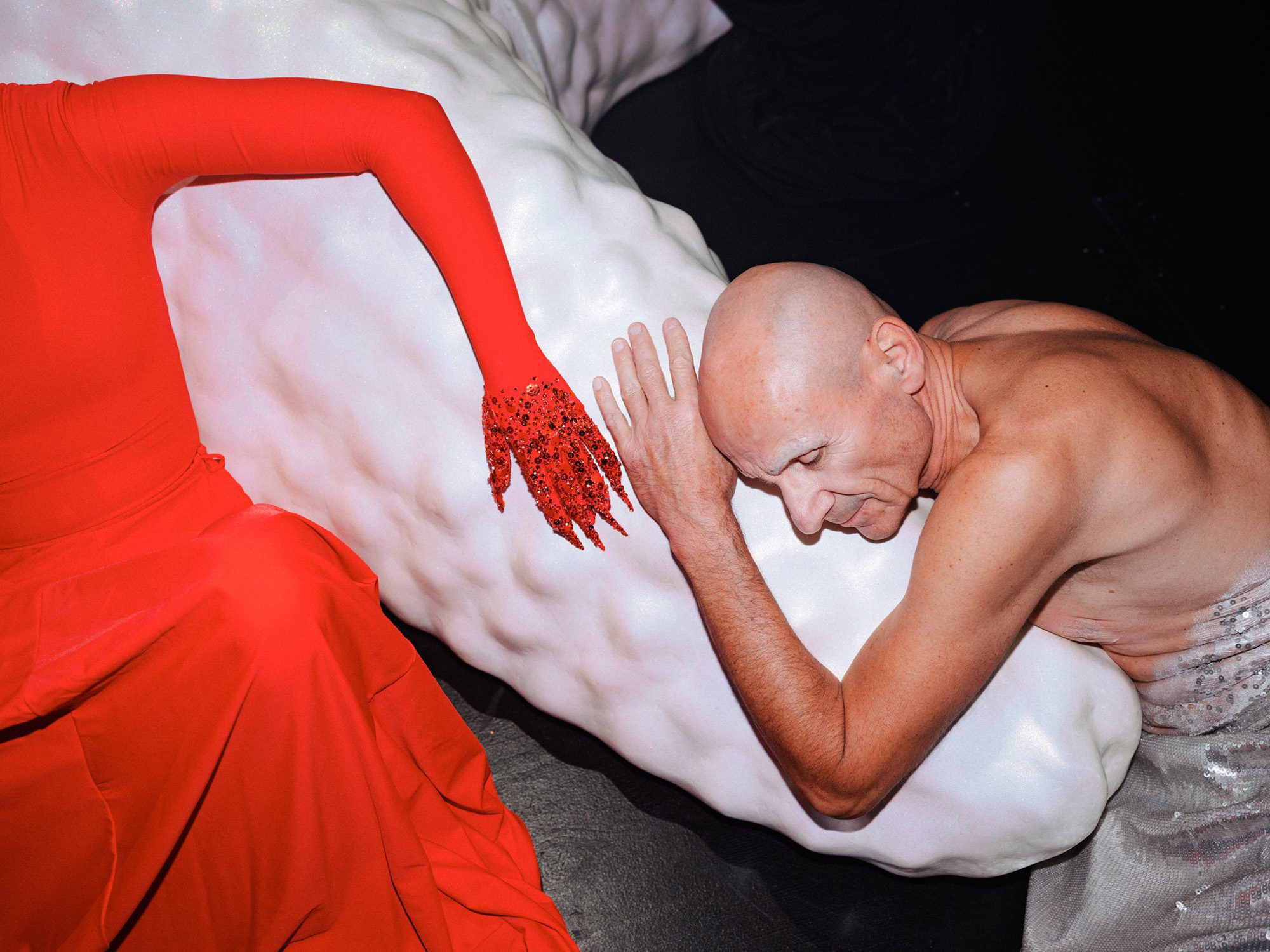 Ein Bakterium, ein Röhrenwurm, eine Muschel und ein Krebs. Sie leben friedlich zusammen in 4.000 Metern Meerestiefe. Der große weiße Seestern in der Mitte der Drehbühne wird zur Wohnlandschaft, in der man chillt. Zwischen dem flankierenden Delfin und der Qualle herrscht Harmonie. Symbiose heißt das Zauberwort.