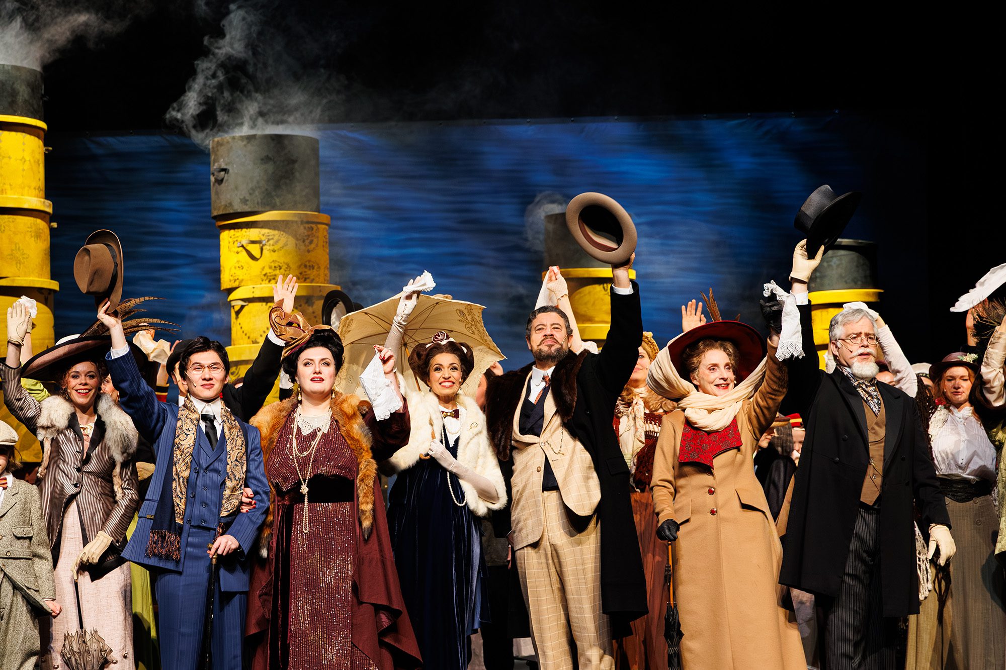 Hameln, Itzehoe, Nienburg u.a. können sich freuen, werden sie doch vom Theater für Niedersachsen (tfn) mit seinem diesjährigen Orchestermusical „Titanic“ beglückt. Die Premiere am Stadttheater Hildesheim ist dabei ein triumphales Ausrufezeichen für die Leistungsfähigkeit des Hauses. Orchester, Kinder- und Opernchor, Solisten aus dem Opernensemble und der hauseigenen Musicalcompany fesseln von der ersten Sekunde an. Achim Falkenhausen leitet die tfn-Philharmonie und hat auch die komplexen, für dieses Stück so wichtigen Chornummern von Maury Yeston einstudiert. Das Orchester bietet dabei einen fein ausgewogenen Klang, der die unterschiedlichen Instrumente immer wieder auch solistisch heraushörbar macht und gleichzeitig Mut zum kraftvollen Tutti hat.