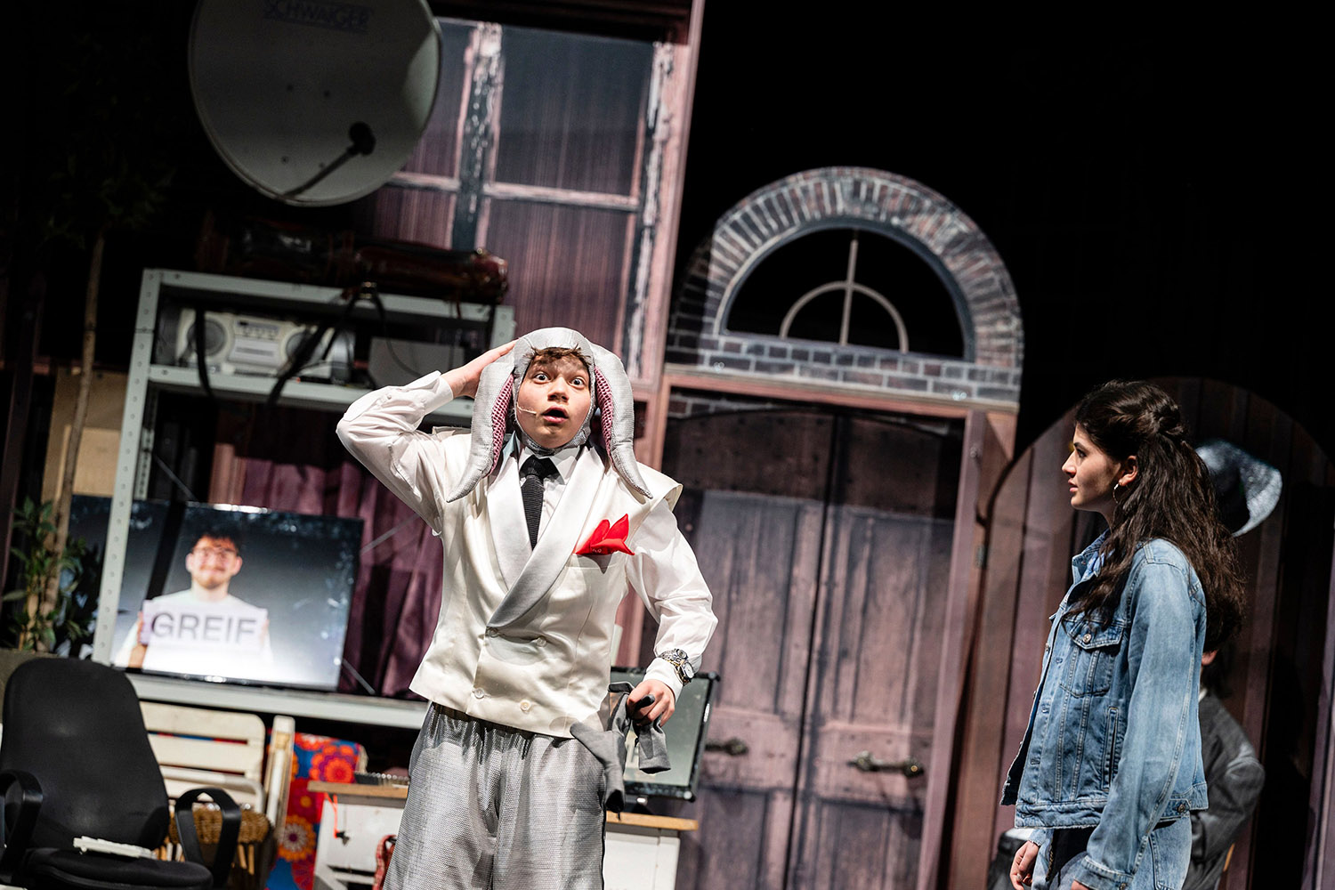 Annika Derlin vollbringt als Chorleitung Großartiges. Ihr gelingt, dass die solistischen Songs von großer Individualität geprägt und die chorischen Stellen gleichzeitig immer wieder mehrstimmig sauber und gekonnt zu hören sind. Respekt! Dazu trägt auch das kleine Orchester unter der Leitung von Peter Schedding bei. Das hört sich nicht nur gut an, sondern der Blick auf den Kontakt zwischen Graben und Bühne zeigt, wie intensiv hier gearbeitet wurde und wie das Orchester die Cast sicher trägt.