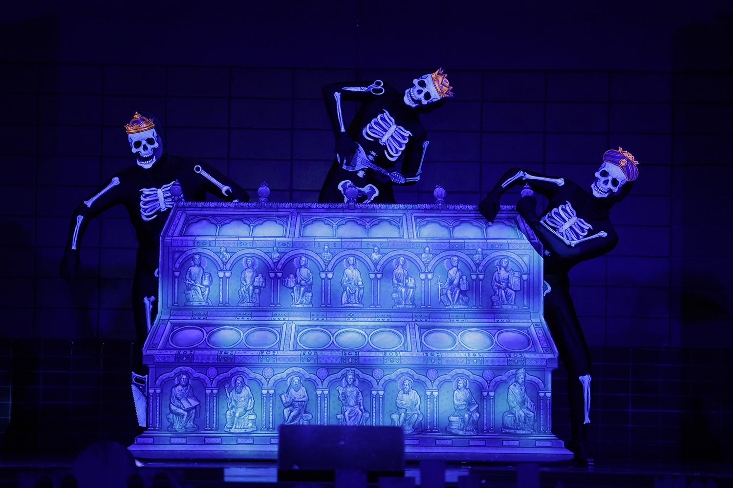 Obwohl man mit Gil Mehmert einen der profiliertesten Musical-Regisseure im deutschsprachigen Raum für die Inszenierung gewinnen konnte, kann er die inhaltliche wie musikalische Zweitklassigkeit des Stücks nur mit seiner präzisen Darstellerführung etwas abfangen – sie erlaubt seinem spielfreudigen Ensemble ein genaues Pointen-Timing. Die zwischen Pop, Karnevalsschlagern, Balladen und Uptempo-Nummern angesiedelten Songs können sich trotz der gesanglichen Qualitäten der Beteiligten oft nicht so richtig entfalten, weil die allzu schmale Bühne einfach ungeeignet für Tänze ist und Choreografin Yara Hassan auch kein Gegenmittel dafür gefunden hat. Lediglich ihr Kollege Bernd Paffrath bringt mit seiner hinreißenden „Skelett“-Steppnummer wenigstens einen Hauch von Broadway nach Köln.