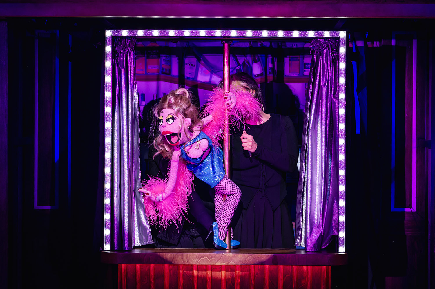 Im Zentrum der Handlung steht Princeton, der nach seinem College-Abschluss in die titelgebende Avenue Q zieht und dort mit der harten Realität des Erwachsenseins konfrontiert wird – allen voran unbezahlte Rechnungen, Beziehungsprobleme und die Frage nach der eigenen Bestimmung. Das durchweg stimmig besetzte Ensemble wird von Noah Harrison angeführt, der als Princeton der klare Sympathieträger des Abends ist, aber auch in seiner Rolle als neurotisch-überdrehter Rod überzeugt. Harrison gelingt es, Rod, der im Verlauf des Stücks lernt, seine Sexualität zu akzeptieren, mit reichlich komischer Überzeichnung zu spielen, ohne ihn zur Karikatur werden zu lassen.