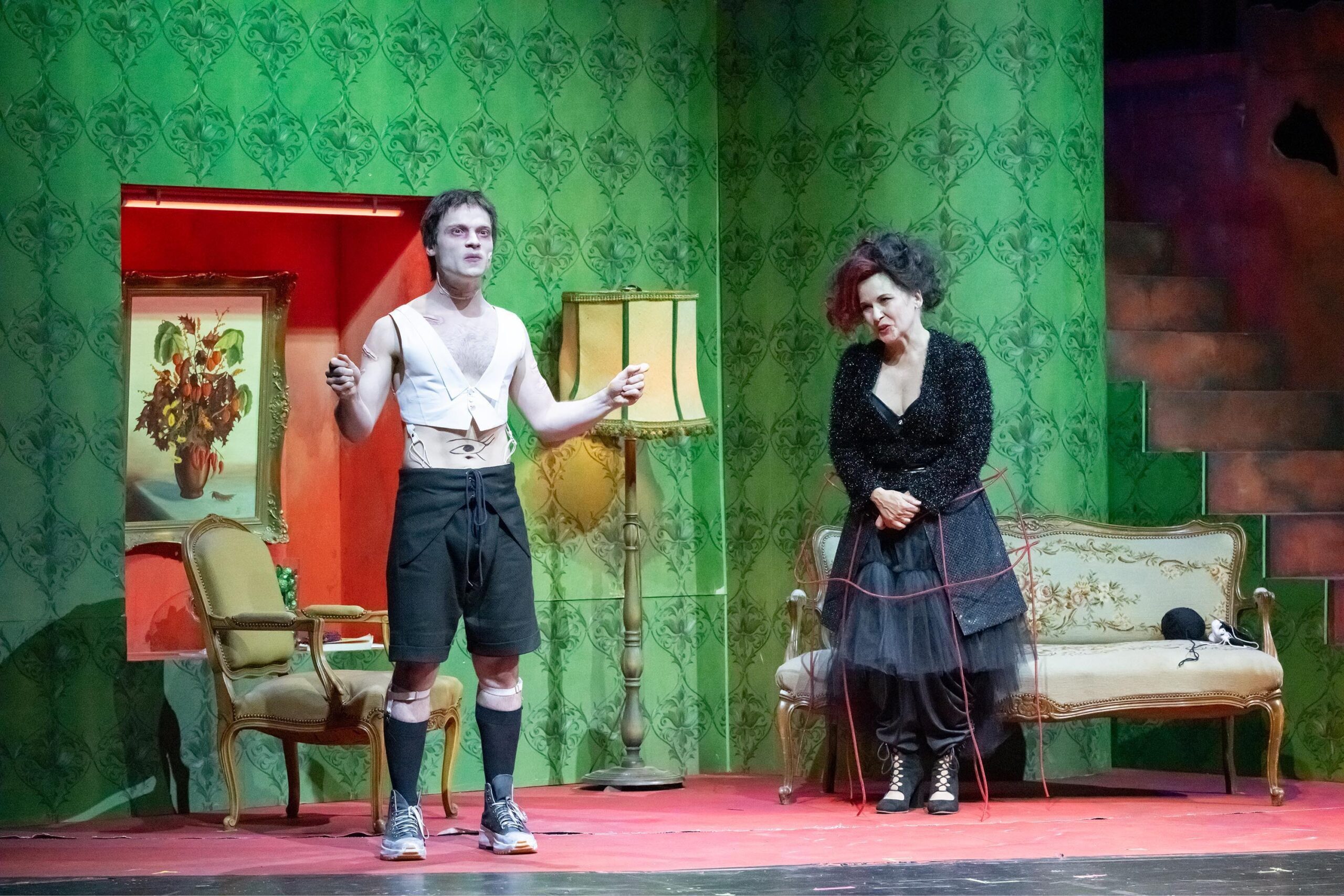 Von Roland Hüve ganz in der Tradition des Grand-Guignol-Theaters inszeniert, spielt das im 19. Jahrhundert in London angesiedelte Schauermärchen sein blutiges Sujet genüsslich aus: Der völlig unschuldige Barbier Benjamin Barker (Johannes Schwärsky) wird von dem skrupellosen Richter Turpin (überzeugend hinterfotzig: Matthias Wippich) zu lebenslanger Verbannung verurteilt. Danach vergewaltigt Turpin Barkers Frau Lucy (Susanne Seefing) und nimmt nach ihrem vermeintlichen Selbstmord ihre Tochter Johanna zu sich. Jahre später kehrt Barker als Sweeney Todd zurück, um sich zu rächen. Die in seinem Haus lebende Bäckerin Mrs. Lovett (Gabriela Kuhn) überlässt ihm seinen alten Friseursalon. Doch sein Rachefeldzug läuft aus dem Ruder – immer mehr Menschen fallen seinem Rasiermesser zum Opfer. Mrs. Lovett wird nicht nur zur Mitwisserin, sondern profitiert auch von seinen Taten: Sie verarbeitet die Leichen zu Pasteten, die sich schnell zu einem kulinarischen Geheimtipp entwickeln. Nach dieser grotesken Wendung bekommt die Geschichte einen romantischen Touch: Sweeneys junger Freund Anthony (mit sympathischer Leichtigkeit: James Park) lernt Johanna (Antonia Busse) kennen und will mit ihr fliehen, ehe ihr Ziehvater sie zur Frau nimmt. Jetzt überschlagen sich die Ereignisse – aber nur für Anthony und Johanna gibt es ein Happy End …