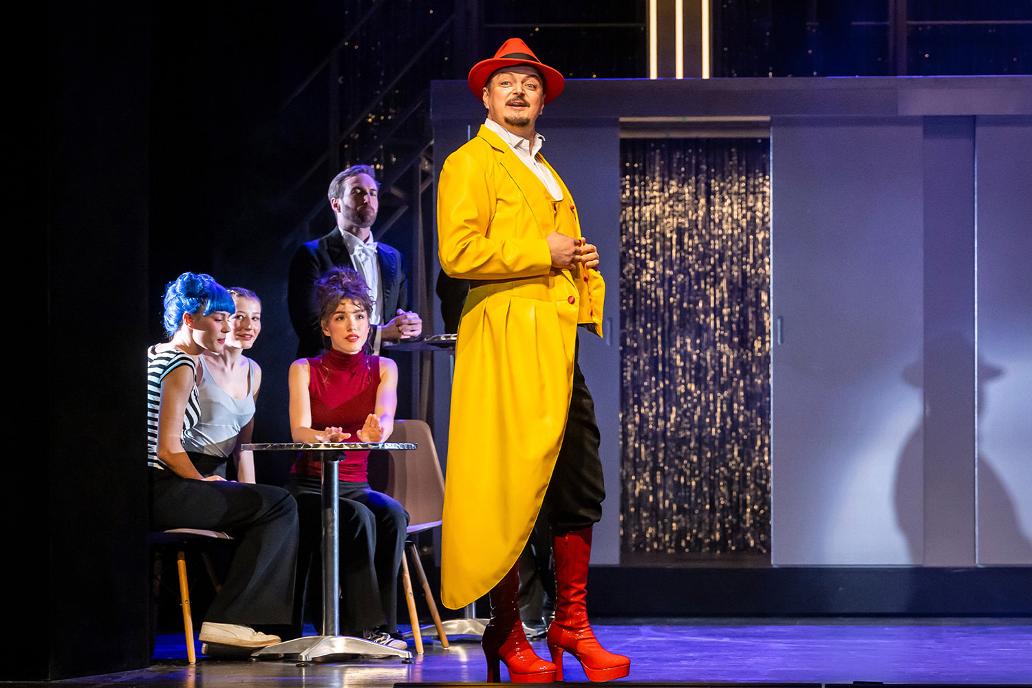 Die Radebeuler Inszenierung des DDR-Evergreens fängt die Stimmung zwischen staubiger Noblesse und Sittenverfall mit Finesse ein, die Figuren werden karikaturesk mit einigen Slapstick-Elementen zugespitzt. Mehr Selbstbewusstsein als im Original dürfen die Damen versprühen. Im Gegenzug offenbaren die Herren einen leicht trotteligen Habitus. Die Choreografie von Nora Schott und Stepp-Expertin Marie-Christin Zeissett bringt den ohnehin flotten Handlungsstrang in reizvoll garnierten Schwung, Manuel Schöbel zurrt alles perfekt und ohne Durchhänger auf Linie.