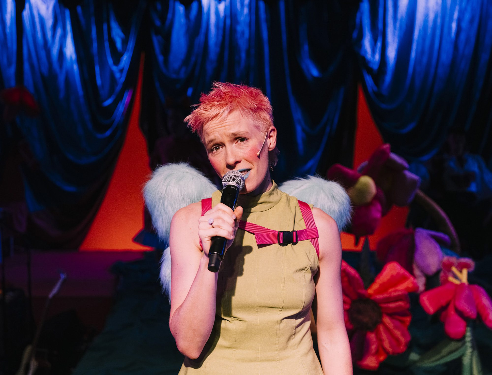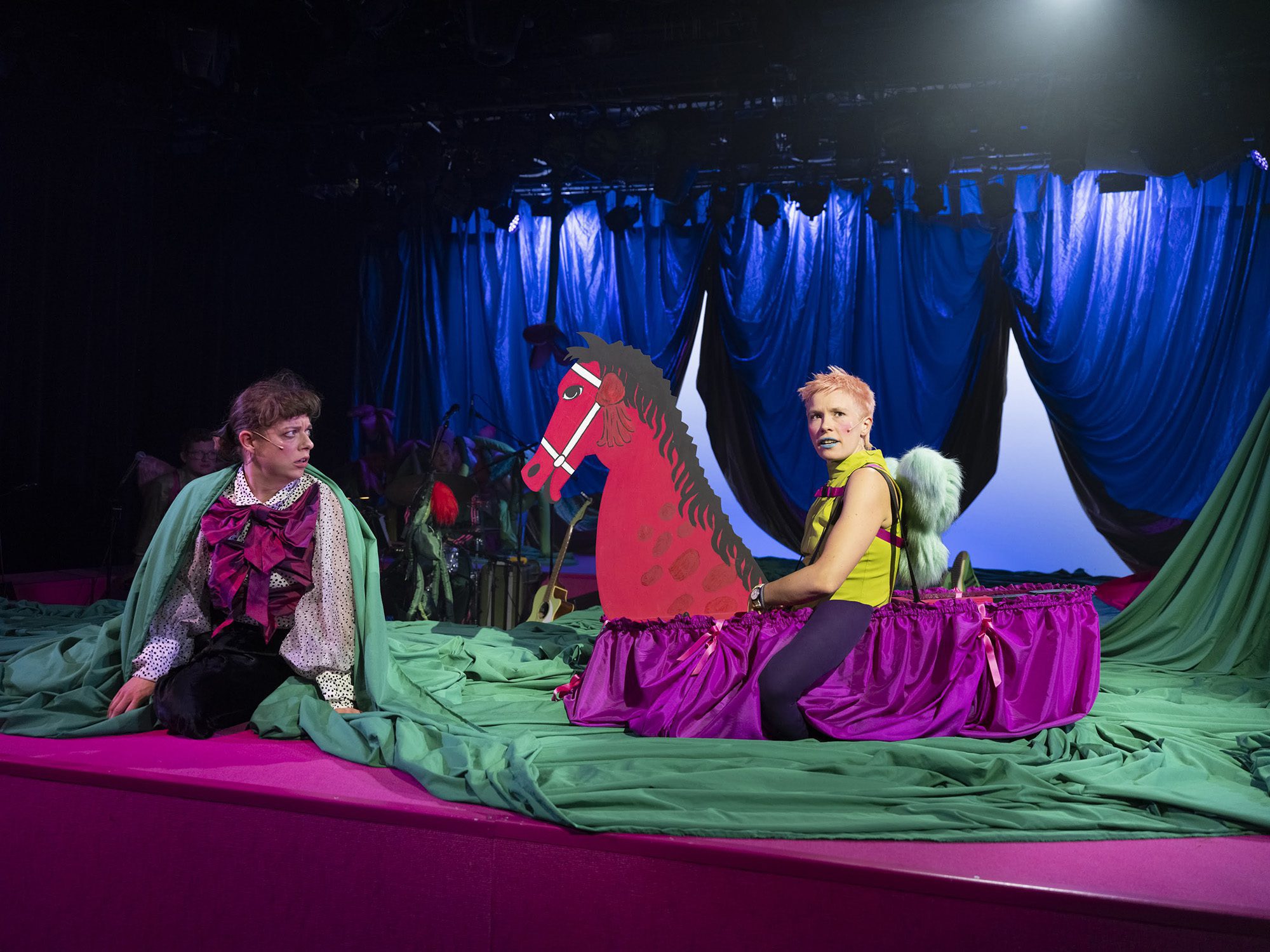 Gesang zieht sich quer durch Raimunds Stücke, die von Feen und allerlei anderen Zaubergestalten bevölkert werden. Einlagen wie das „Hobellied“ kombiniert Mabo mit eigenen Songs aus ihrem neuen vierten Studioalbum „Mittelschwere Ekstase“, statt ans „Meer“ geht es halt ins niederösterreichische Gutenstein. Die junge, feengleiche Liedermacherin fängt die Aura der längst vergangenen goldenen Volkstheater-Ära ein, treibt sie mit der sanft-verträumten Schrägheit einer Judith Holofernes auf die Spitze – und macht eine neue Generation vertraut mit einem Künstler, „den außerhalb der Alpenrepublik keiner mehr kennt geschweige denn spielt“. Wenn Mabo mit rosa Kurzhaar-Frisur, grünem Kleid und Glitzerstiefeln auf einem Papp-Pferdchen hereinreitet, hat man das Gefühl, der leichtfüßigen Punk-Prinzessin des neuen Musicals zuzusehen. Und zwischen aller Stand-up-Comedy scheinen immer wieder auch sentimentale Bar-Momente durch, wie sie wohl jeder kennt: pur, echt, mit genau dem richtigen Schuss Sentimentalität.