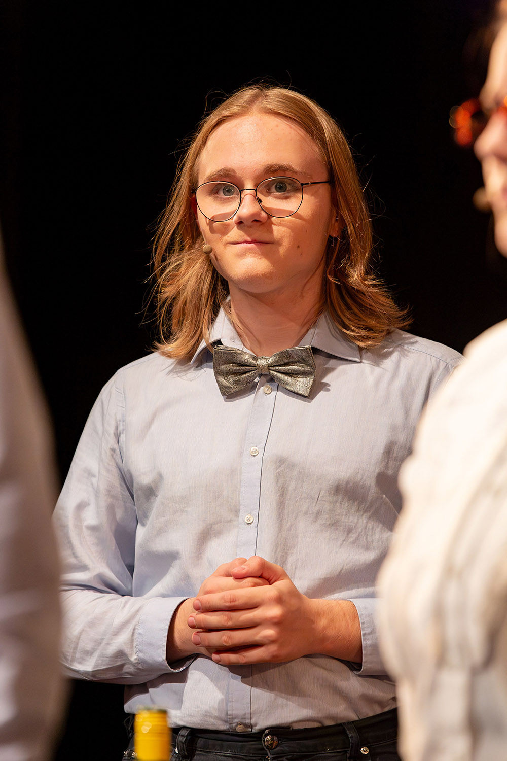 Es beginnt mit einem vom TiC selbst produzierten Video-Einspieler, in dem der kleine Daniel (Gavrill Moschos) mit seiner Geige herumfidelt und von seinen Mitschülern als Muttersöhnchen gemobbt wird, vor allem vom besonders gemeinen Conny (Jonas Stanke – der Sohn von Patrick Stanke). Dann betritt der erwachsene Daniel (Leon Gleser), mittlerweile ein international erfolgreicher Dirigent, die Bühne und wir erfahren, dass er nach einem Herzinfarkt seine Karriere aufgegeben hat, in das Dorf seiner Kindheit zurückkehrt und dort den Kirchenchor übernimmt. Was als Erholung und Neuanfang gedacht war, entwickelt sich zu einem gruppendynamischen Prozess, in dem unausgesprochene Gefühle und verdrängte Wahrheiten ans Licht kommen. Auch Daniel kann sich dem letztlich nicht entziehen, vor allem nicht den Gefühlen der jungen Lena. Am Ende, als man zu einem von Daniel zunächst abgelehnten Chorwettbewerb fährt, erleidet er einen zweiten Herzinfarkt. Der nun auf sich allein gestellte Chor findet aber durch die Musik zusammen. So wird „Wie im Himmel” zu einem berührenden Plädoyer für Gemeinschaft und die heilende Kraft der Musik.